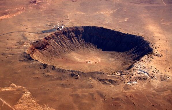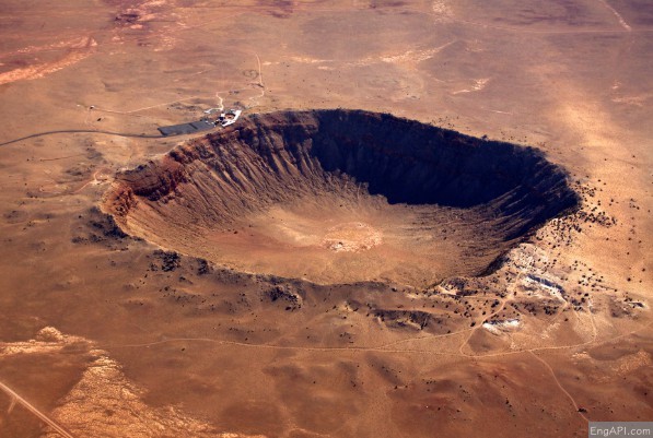 有时,您可能会听到“crater”这个词用作动词,例如“这部电影的票房惨遭失败,收入远低于预期。”但您通常会听到“crater”用作名词,指爆炸或撞击留下的碗状凹陷。在亚利桑那州弗拉格斯塔夫郊外,您会发现流星陨石坑,这是地球表面最清晰的撞击坑之一。尽管产生它的流星直径不到 100 码,但它的直径却接近一英里。